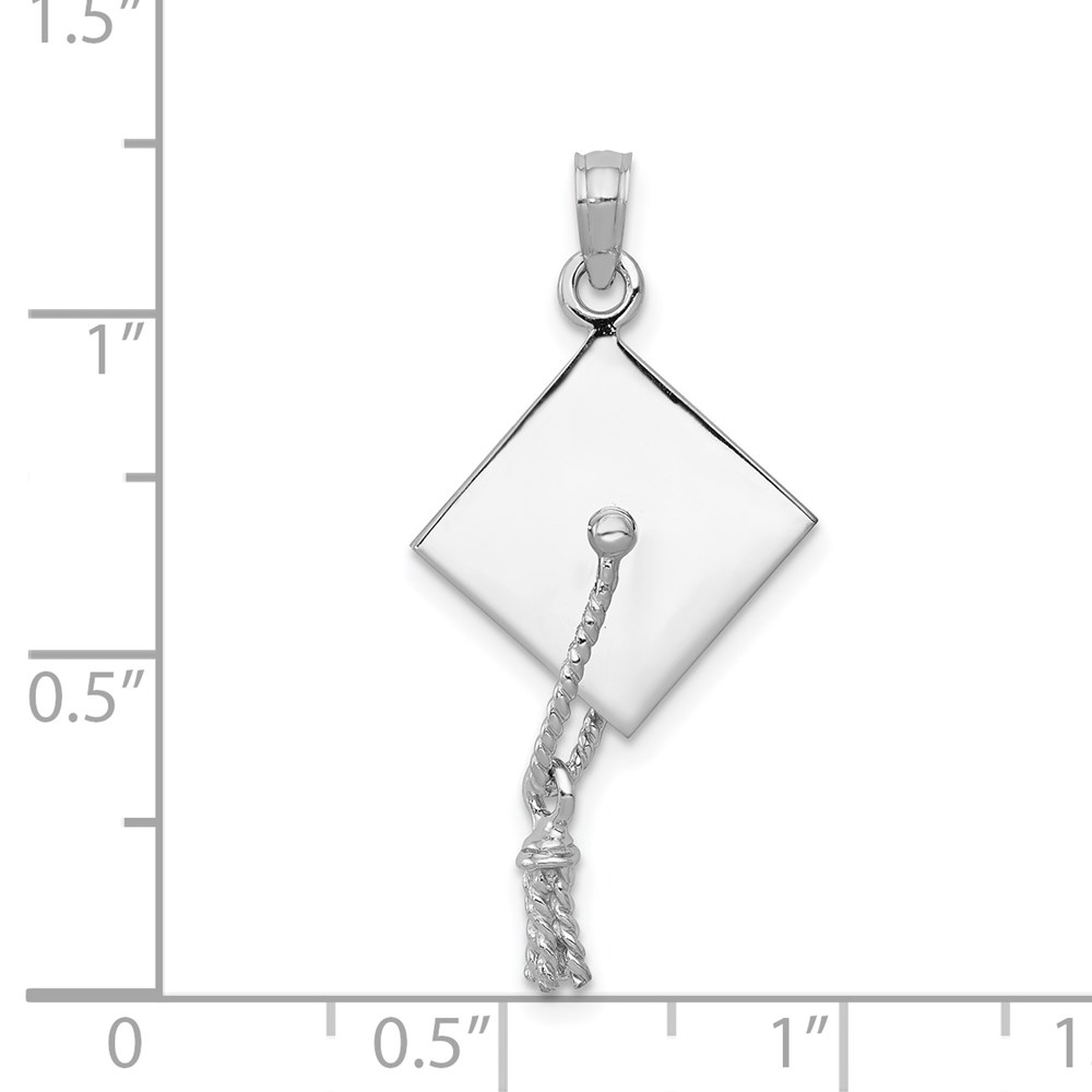 14K White Gold 3-D Graduation Cap with Moveable Tassel Charm