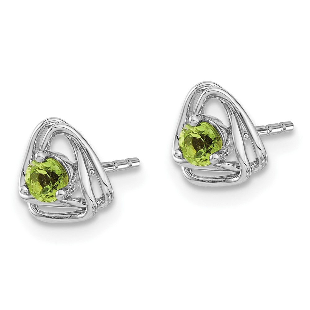 14k White Gold 3mm Round August/Peridot Triangle Post Earrings