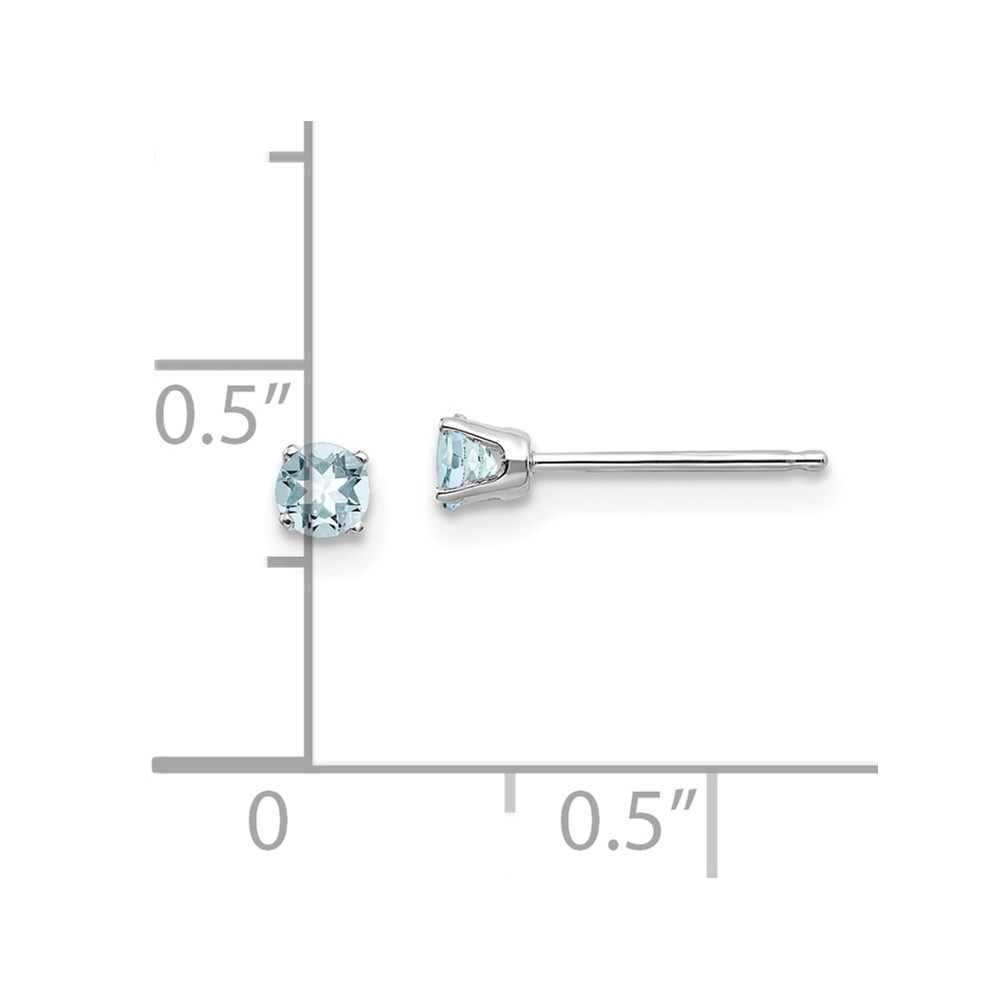 14k White Gold 3mm Round March/Aquamarine Stud Earrings