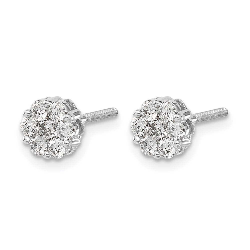 14k White Gold 5/8 carat Diamond Cluster Screwback Post Earrings