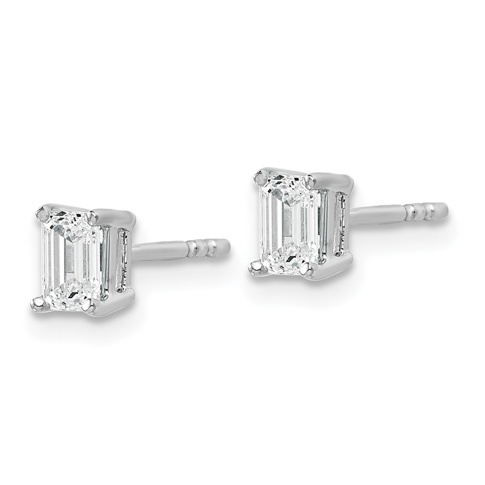 14k White Gold 5/8 carat Lab Grown Diamond VS/SI+ G+ Emerald Complete Four Prong Stud Earrings