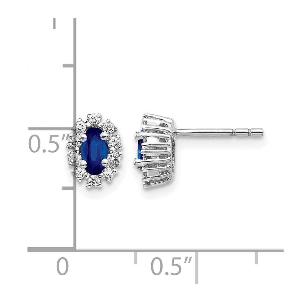 14k White Gold 5x3mm Oval Sapphire and Diamond Halo Post Earrings