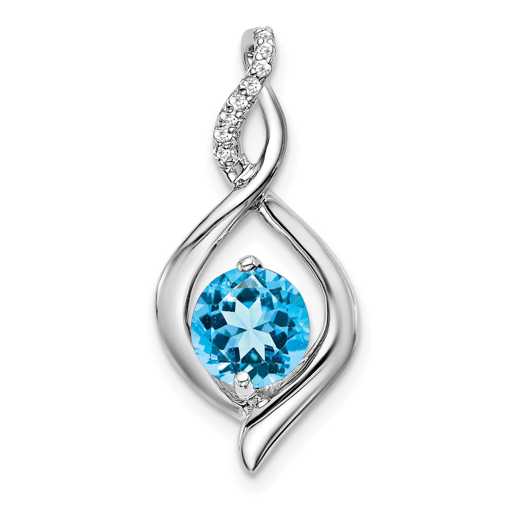 14k White Gold 6.5mm Round Blue Topaz and Diamond Fancy Pendant