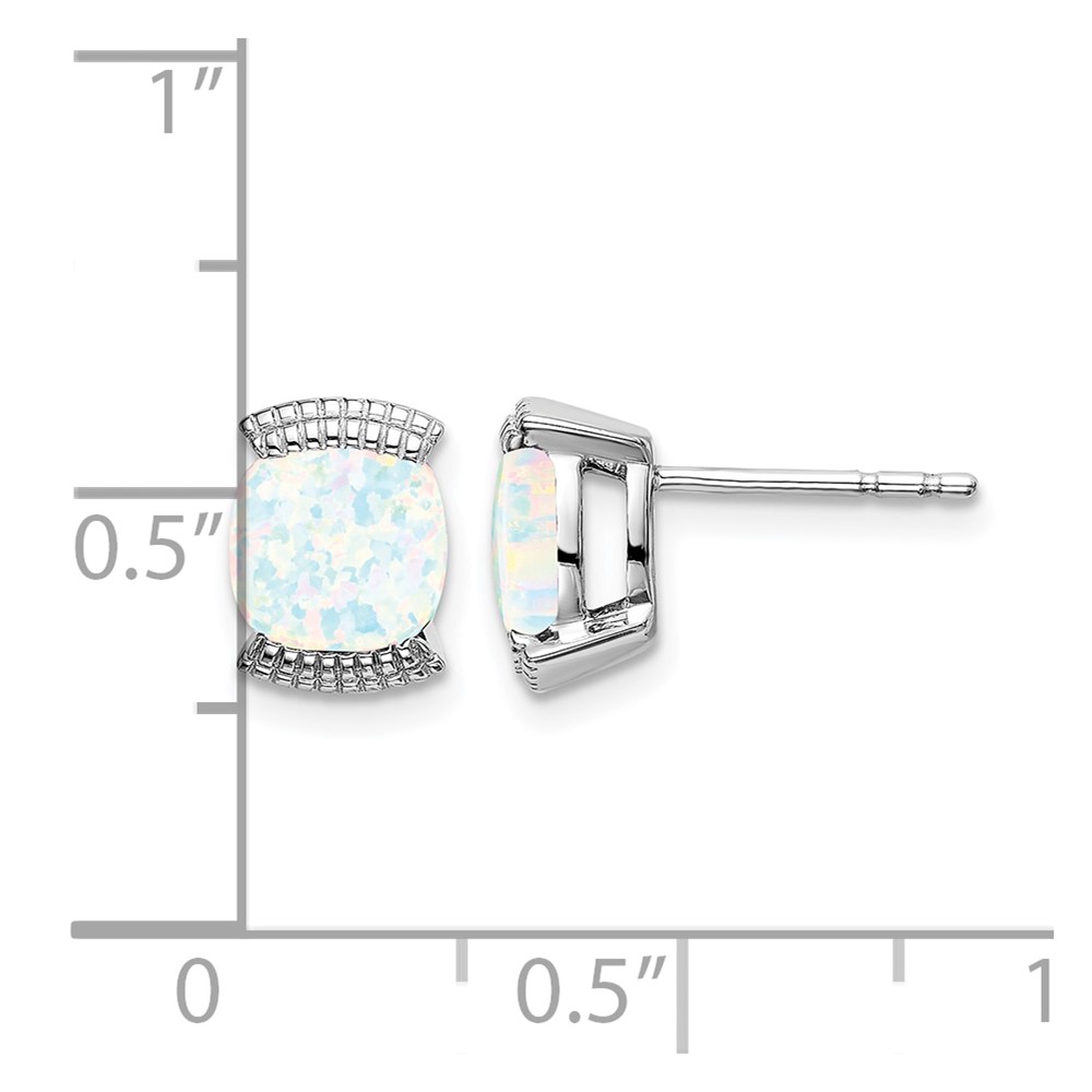 14k White Gold 6mm Cushion Lab Created Opal Post Earrings