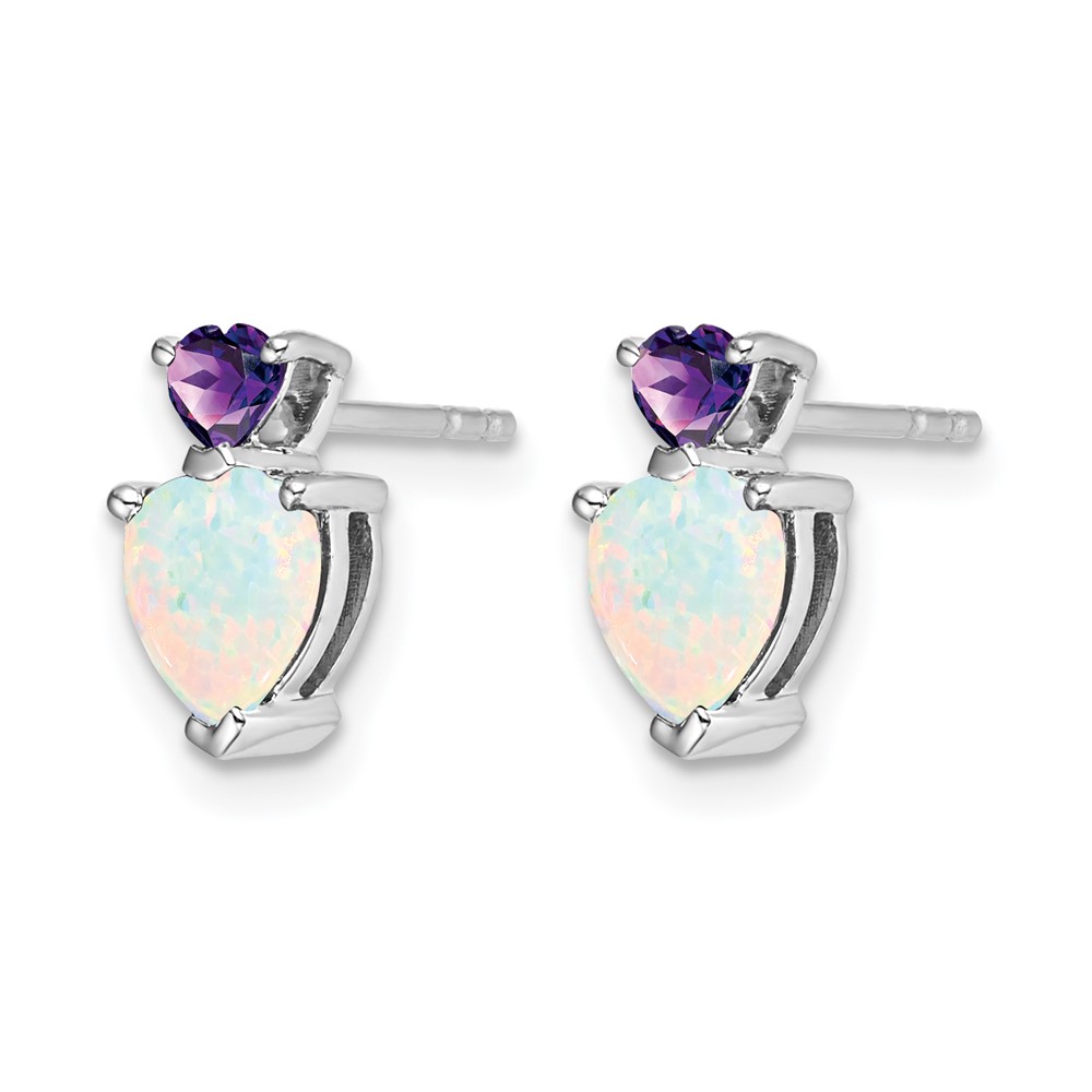 14k White Gold 6mm Heart Lab Created Opal and Amethyst Post Earrings