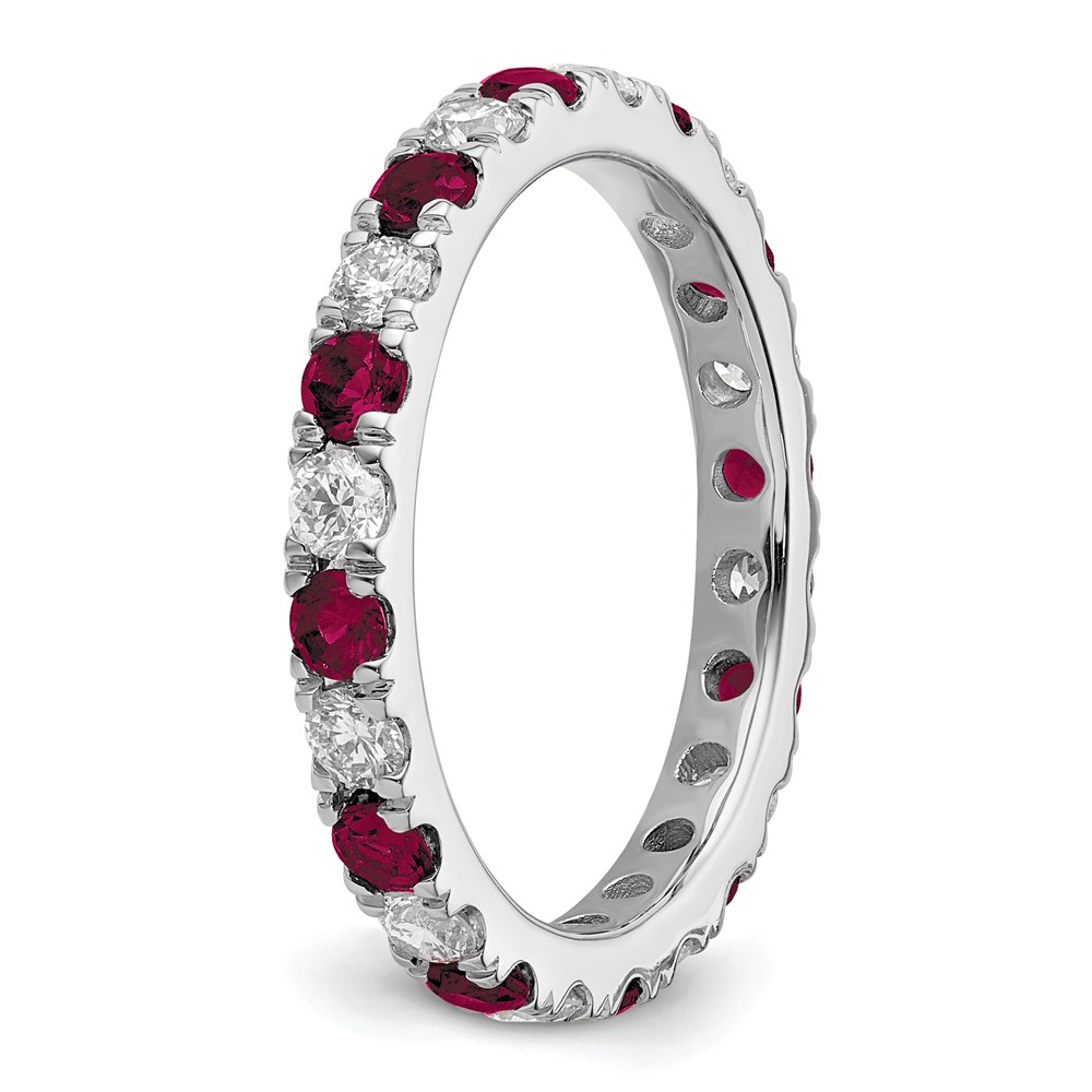 14k White Gold 7/8 carat Lab Grown Diamond VS/SI+ G+ and Lab Created Ruby Size 8.5 Eternity Band