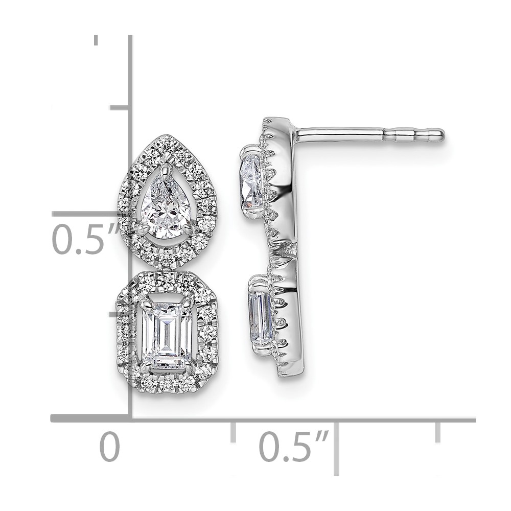 14k White Gold 7/8 carat Lab Grown Diamond VS/SI+ G+ Complete Two Stone Dangle Halo Post Earrings