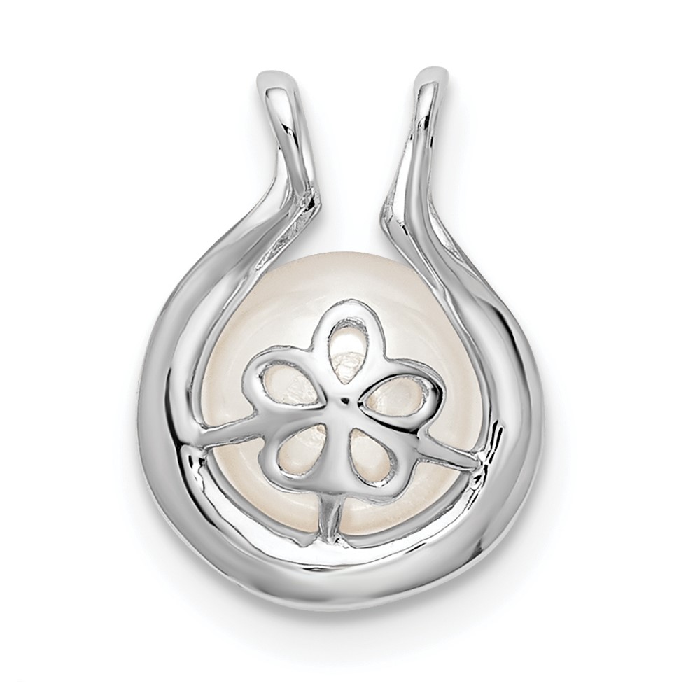 14k White Gold 8-9mm Round White Freshwater Cultured Pearl and Diamond Chain Slide