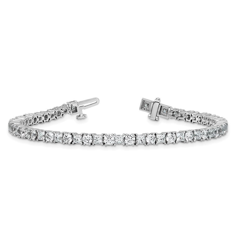 14k White Gold 7 carat Lab Grown Diamond VS/SI+ G+ Complete Princess and Round Tennis Bracelet