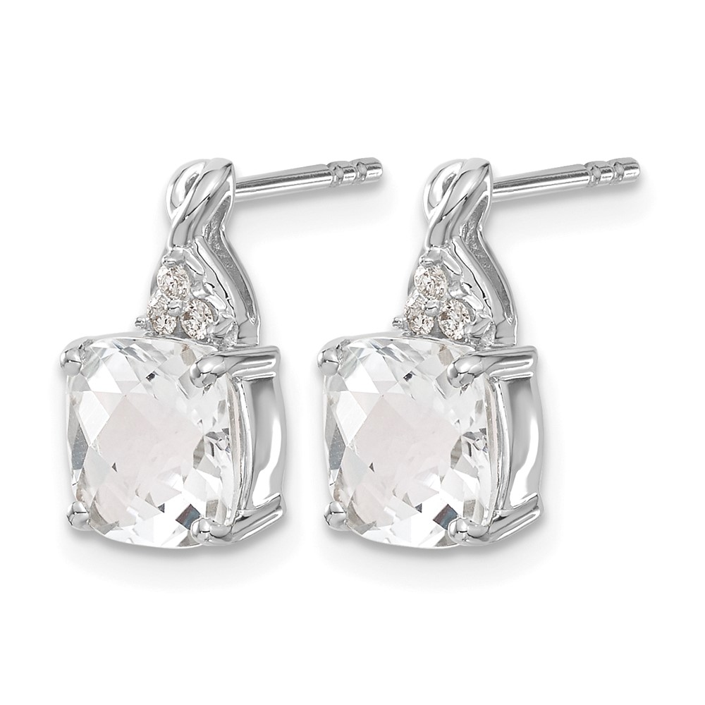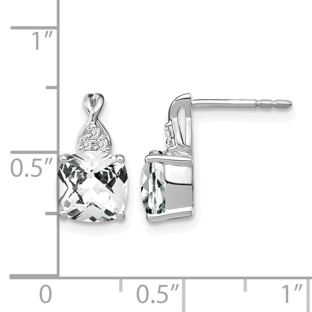 14k White Gold 7mm Cushion Checkerboard April/White Topaz and Diamond Post Earrings