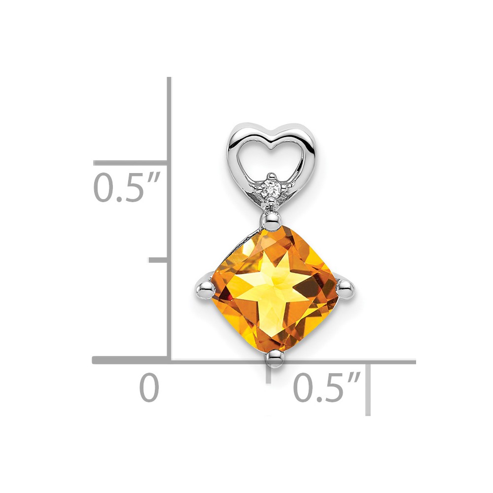14k White Gold 7mm Cushion November/Citrine and Diamond Heart Chain Slide