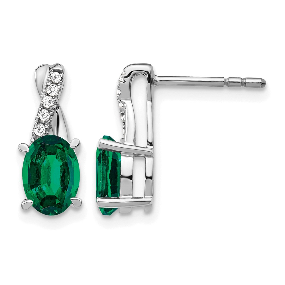 14k White Gold 7x5mm Oval Lab Created Emerald and Diamond Post Earrings