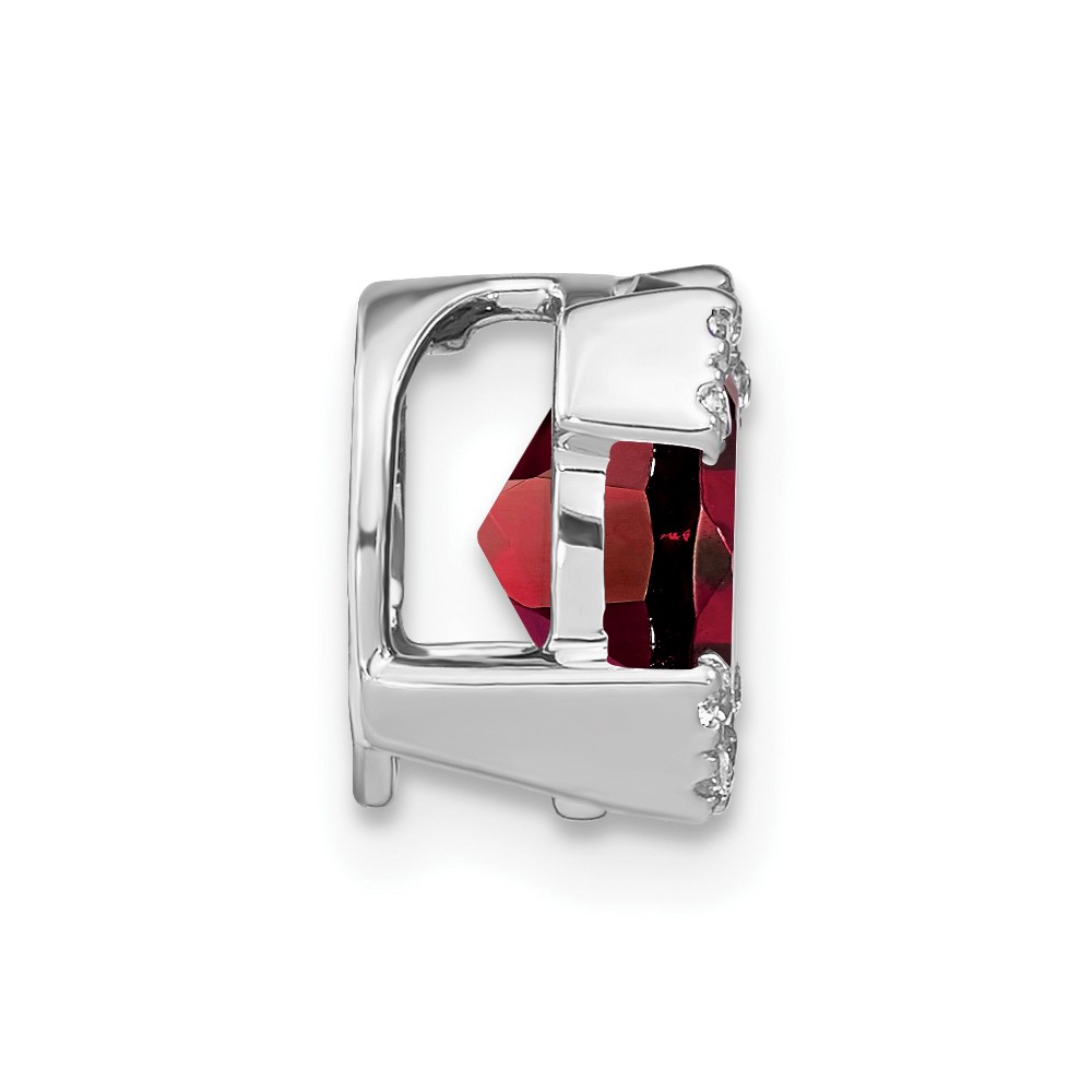 14K White Gold Polished Diamond and Garnet Heart Chain Slide
