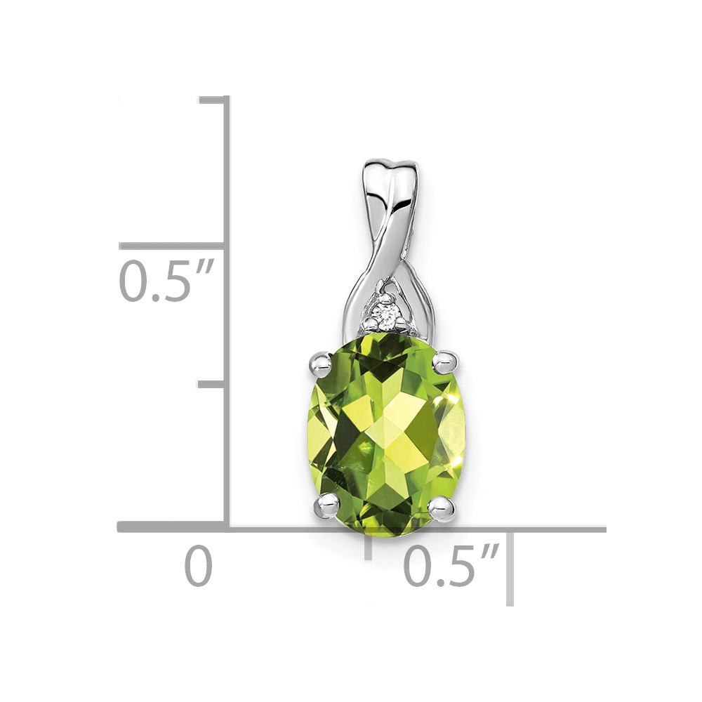 14k White Gold 9x7mm Oval Peridot and Diamond Chain Slide