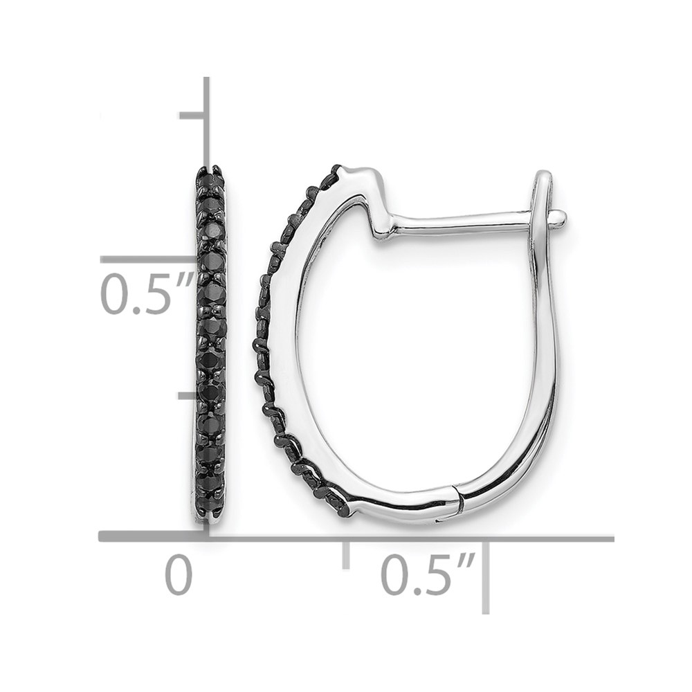 14k White Gold Black Diamond 1.3mm Hinged Hoop Earrings
