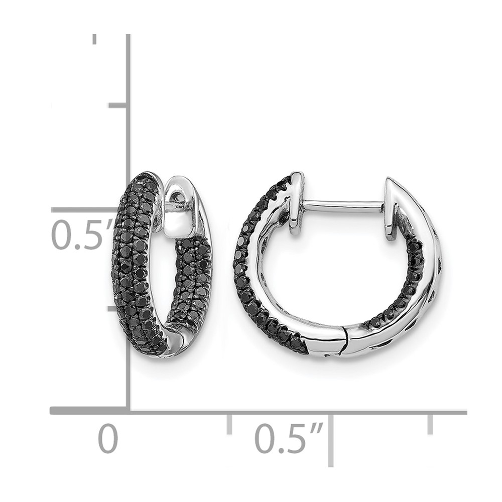 14k White Gold Black Diamond Hinged Hoop Earrings