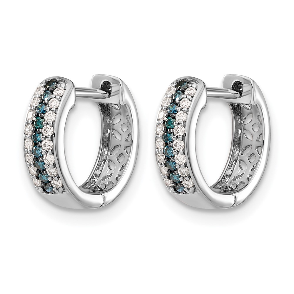 14k White Gold Blue and White Diamond Hinged Hoop Earrings