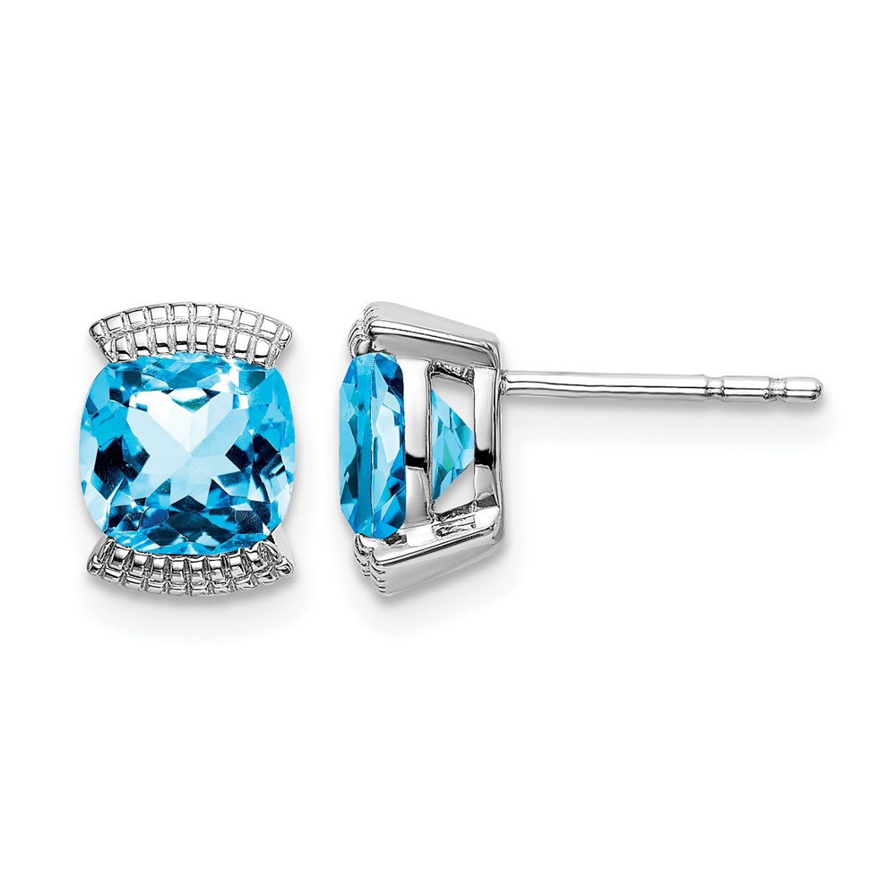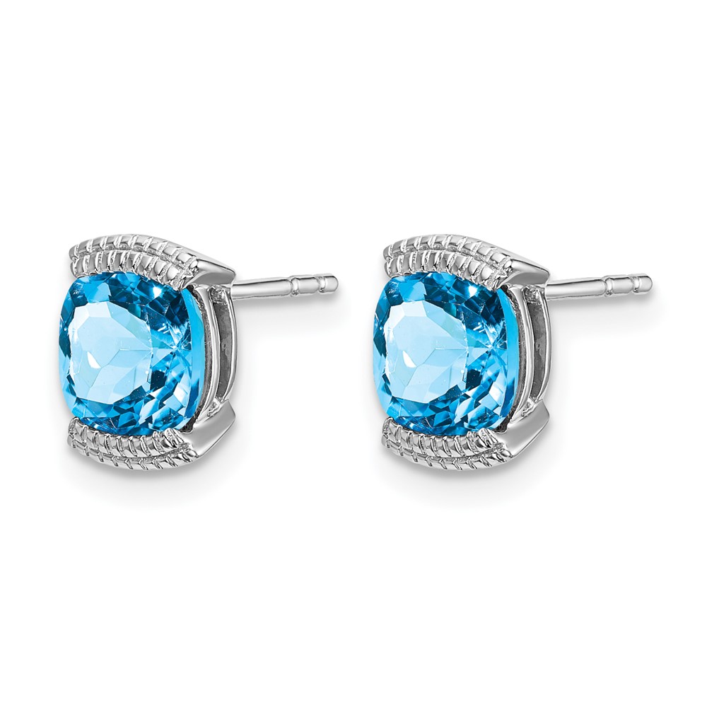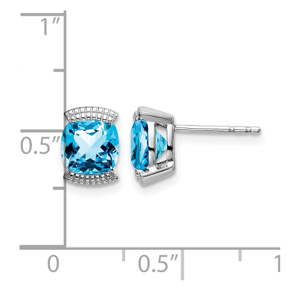 14k White Gold Blue Topaz Post Earrings