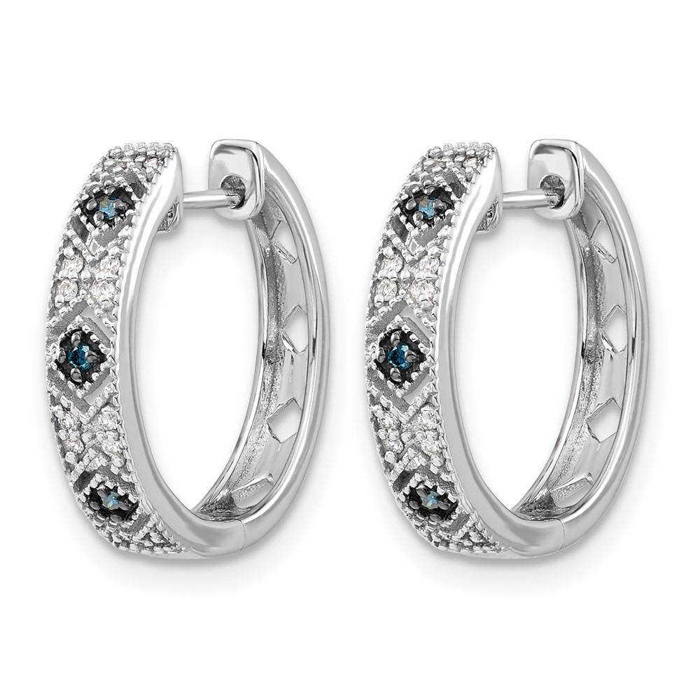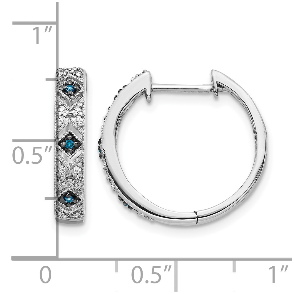 14k White Gold Blue/White Diamond Hinged Hoop Earrings