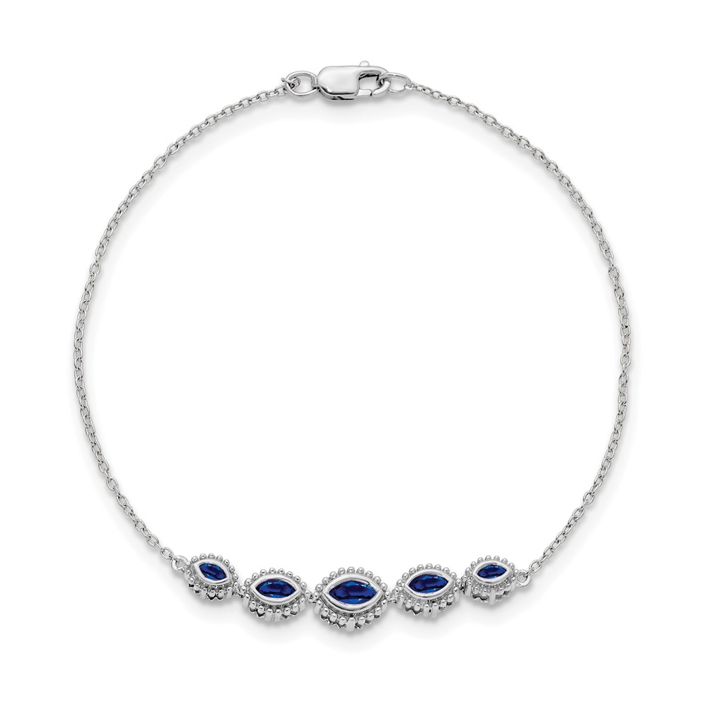 14k White Gold Complete 5-Stone Bezel-set Marquise Sapphire and Chain 7 inch Bracelet