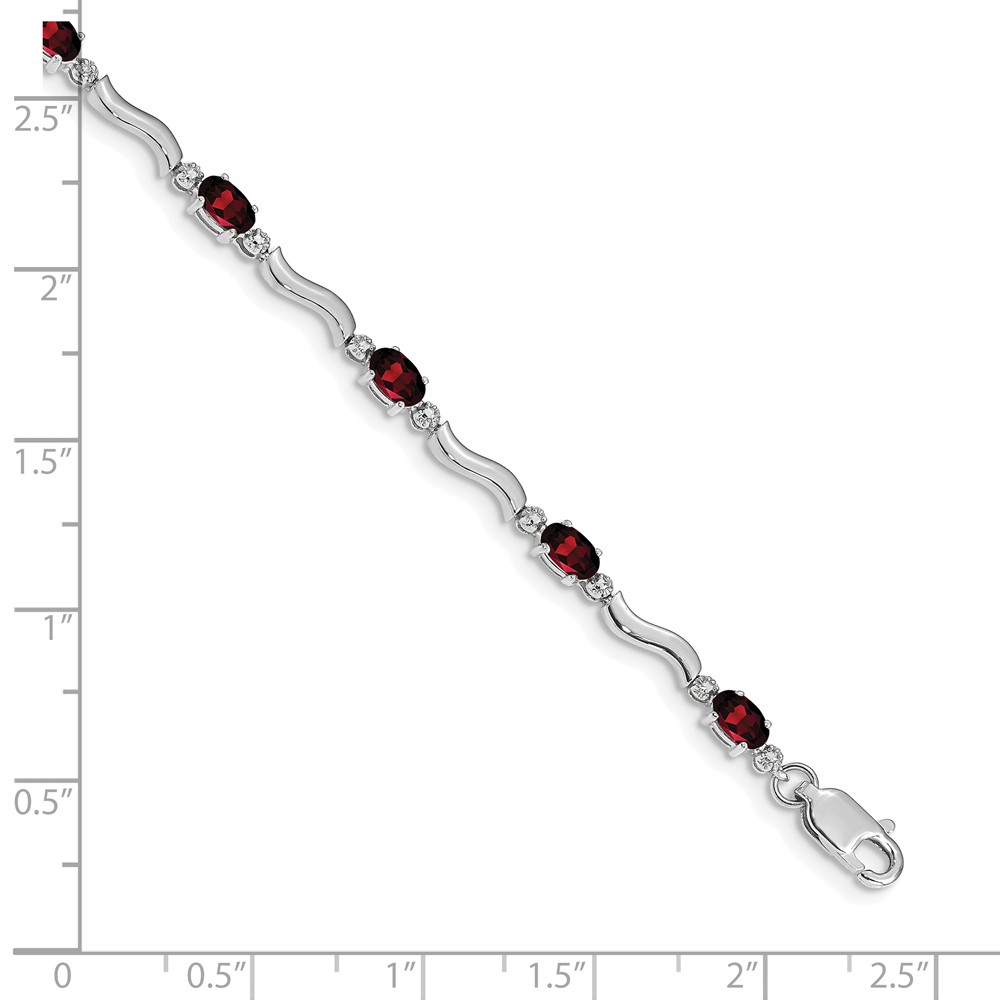 14k White Gold Complete Diamond and Oval Garnet Wavy Link 7 inch Bracelet