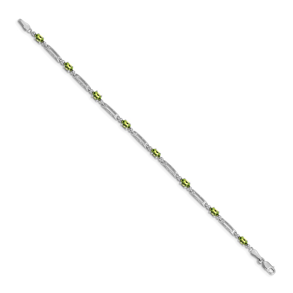 14k White Gold Complete Diamond and Oval Peridot Fancy Link 7 inch Bracelet