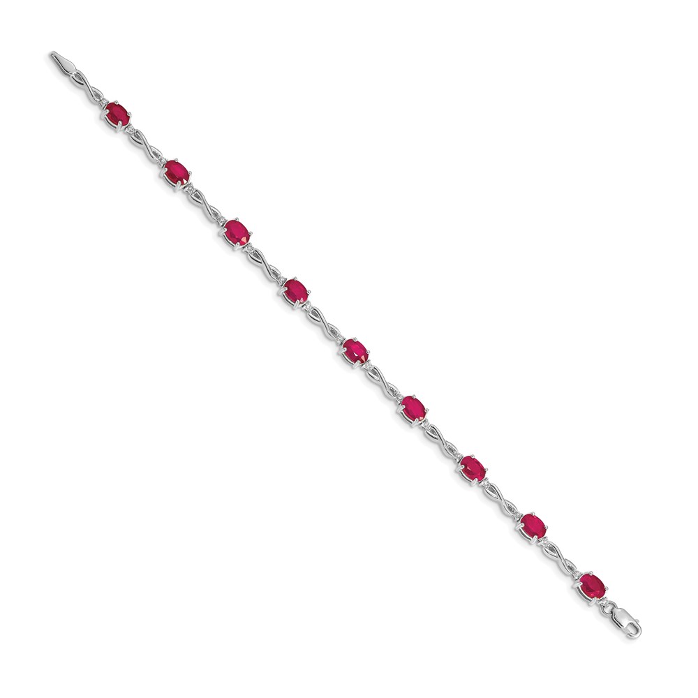14k White Gold Complete Diamond and Oval Ruby Infinity 7 inch Bracelet