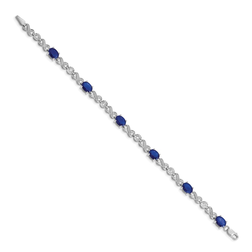 14k White Gold Complete Diamond and Oval Sapphire Infinity Link 7.25 inch Bracelet