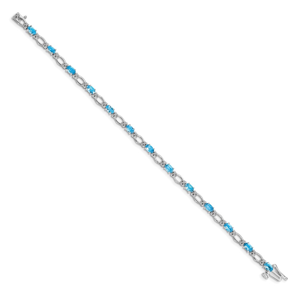 14k White Gold Complete Diamond and Oval Swiss Blue Topaz Heart Accent 7 inch Bracelet