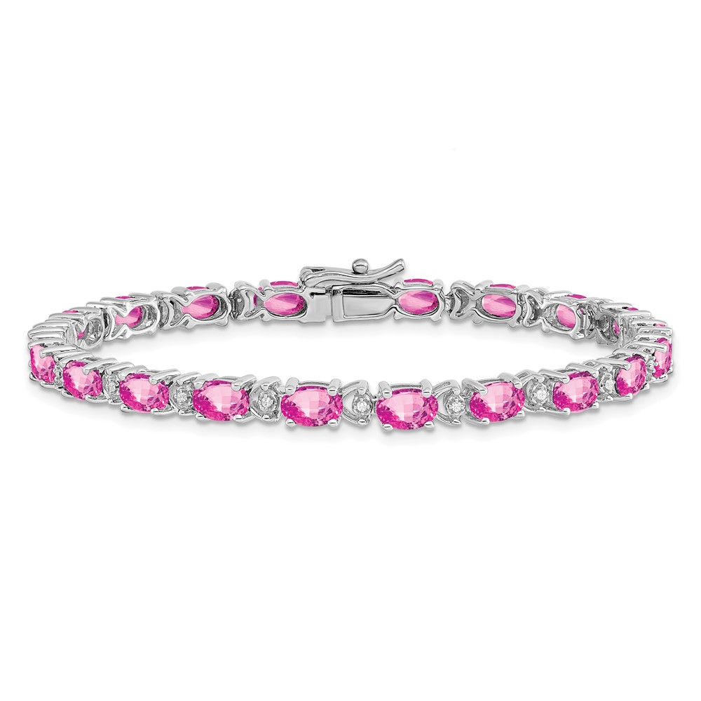 14k White Gold Complete Lab Created Oval Pink Sapphire and Diamond 7 inch Bracelet