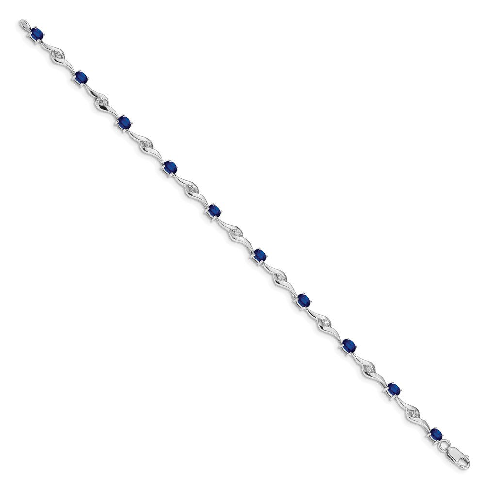 14k White Gold Complete Diamond and Oval Sapphire X-design 7.25 inch Bracelet
