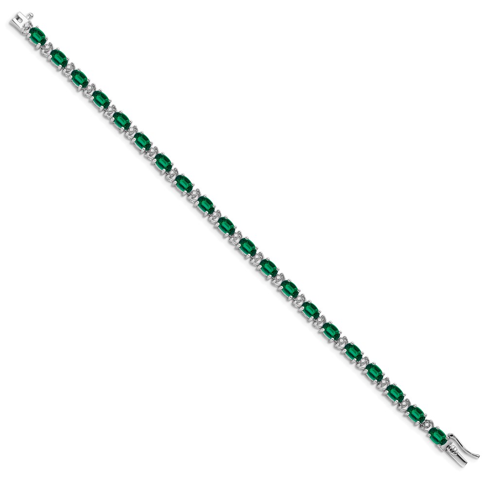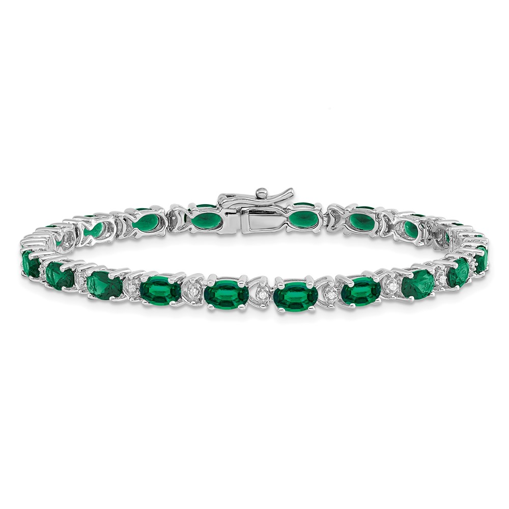14k White Gold Complete Oval Lab Created Emerald and Diamond 7 inch Bracelet
