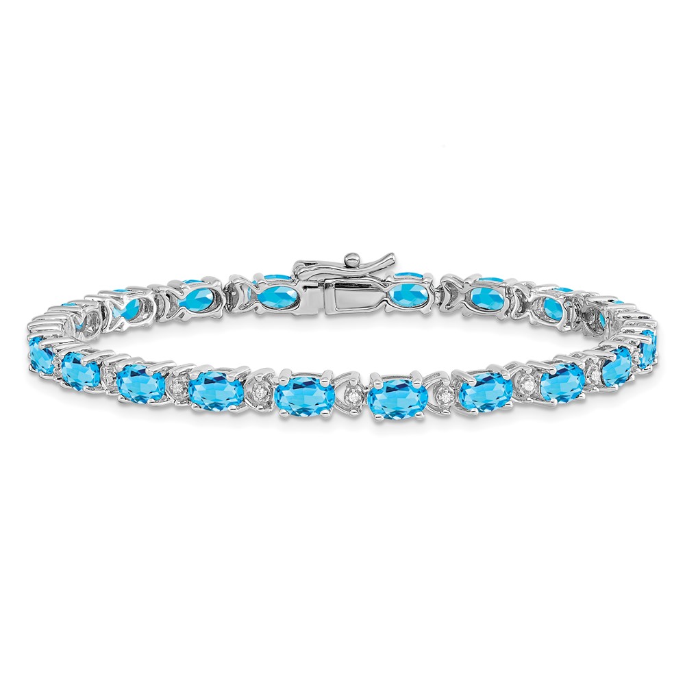 14k White Gold Complete Oval Swiss Blue Topaz and Diamond 7 inch Bracelet