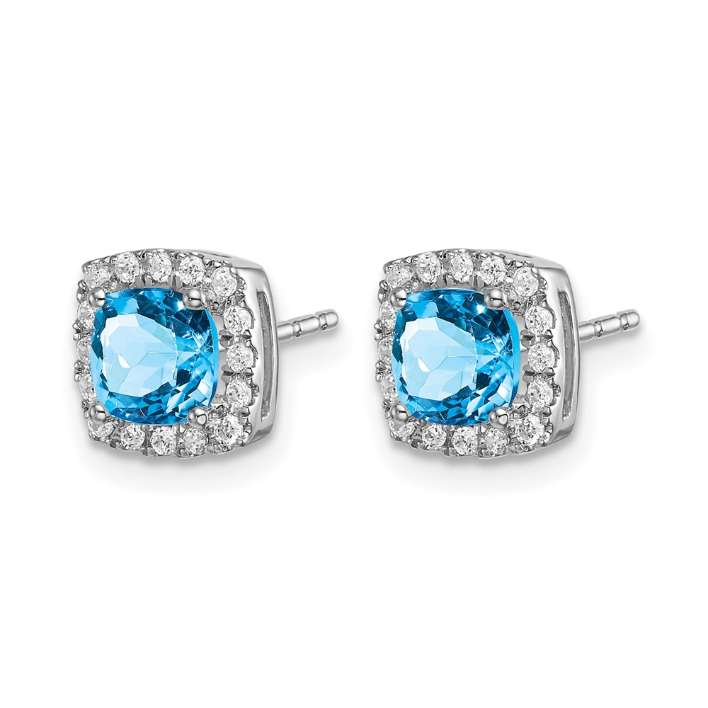 14k White Gold Cushion Blue Topaz and Diamond Halo Earrings
