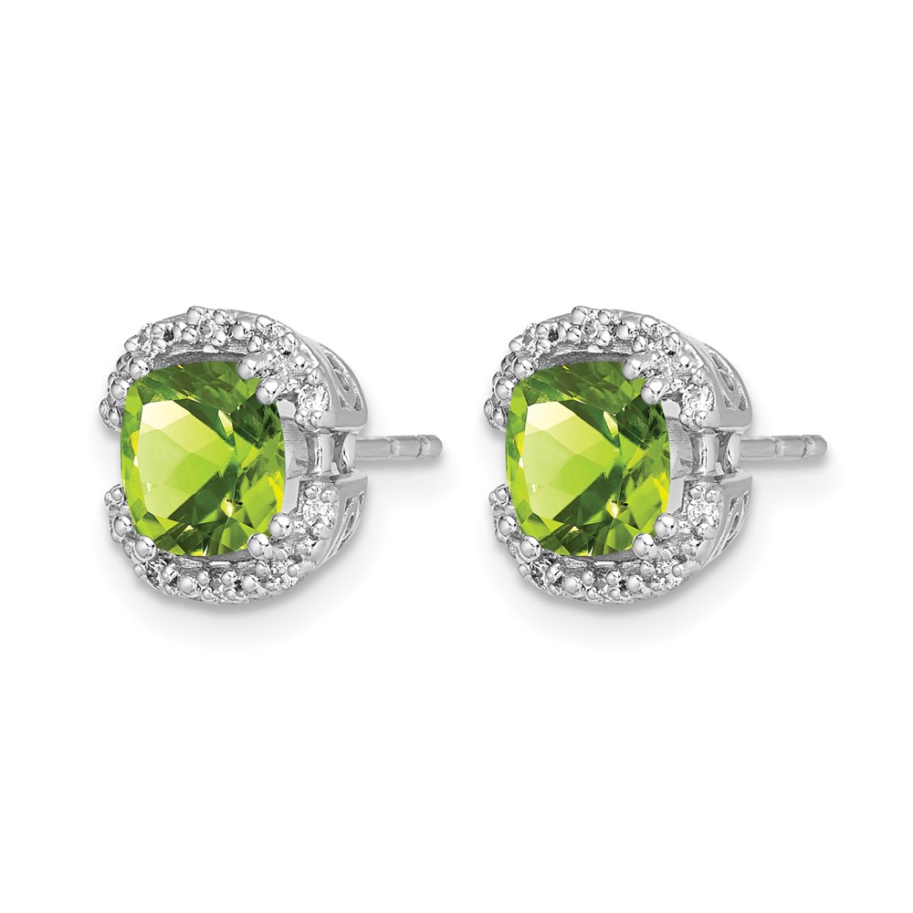 14k White Gold Cushion Peridot and Diamond Halo Earrings