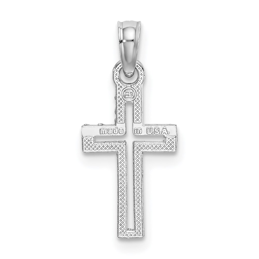 14K White Gold Cut-out Diamond-cut Cross Charm
