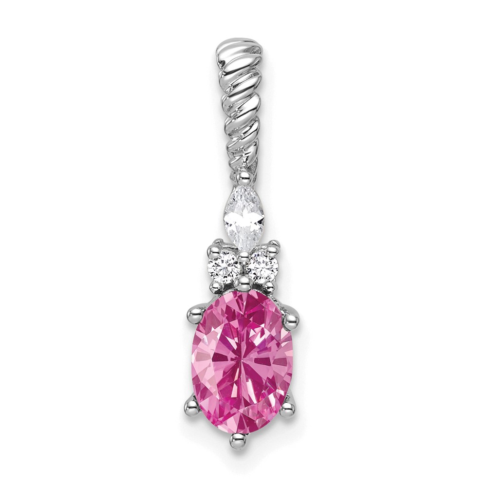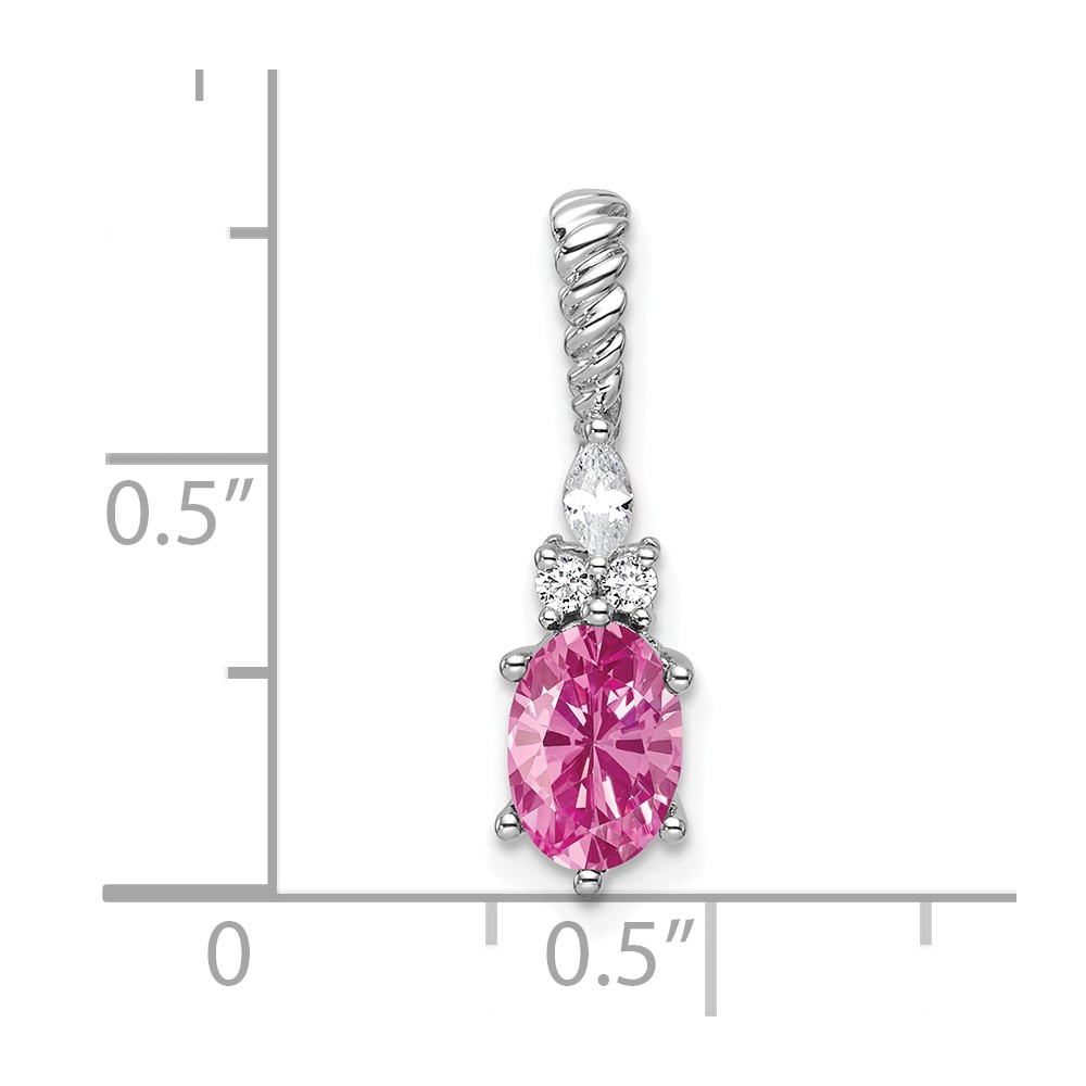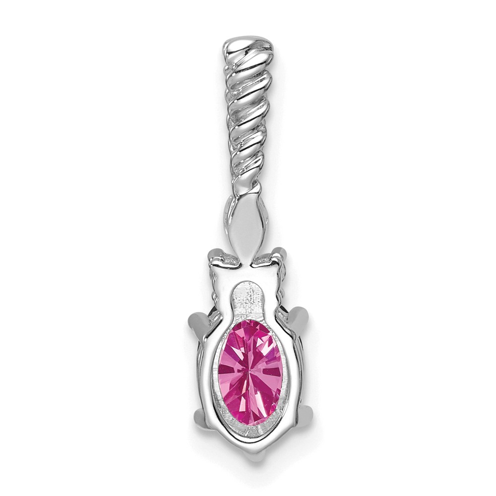 14K White Gold Diamond and 7×5 Oval October/Lab Created Pink Sapphire Twisted Chain Slide