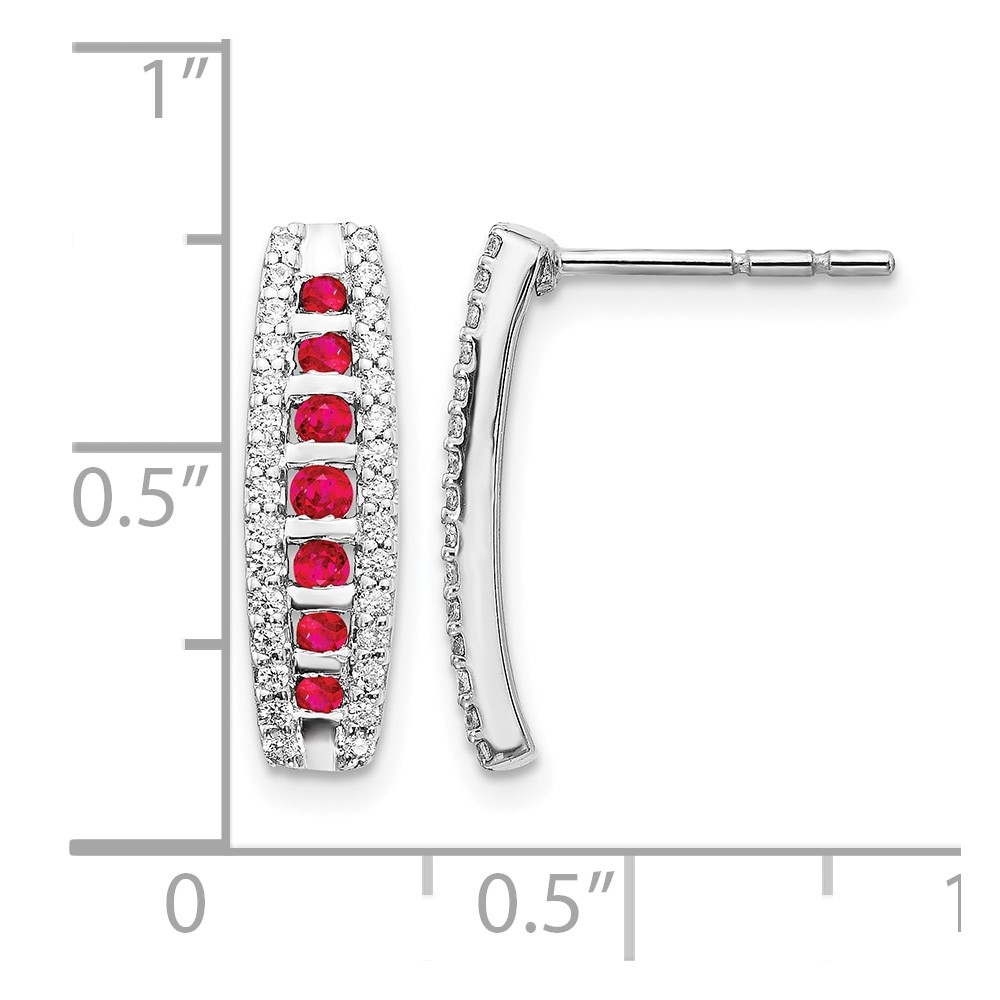14k White Gold Diamond and Ruby Fancy Curved Post Earrings