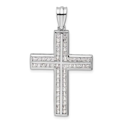 14k White Gold 1 carat Lab Grown Diamond VS/SI+ G+ Complete Double Cross Pendant