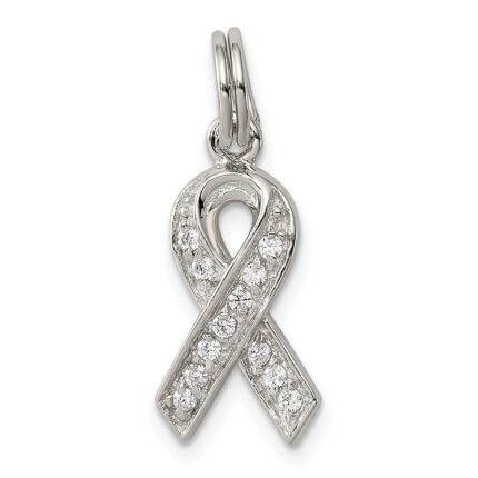 14k White Gold Diamond-cut Awareness Ribbon Pendant