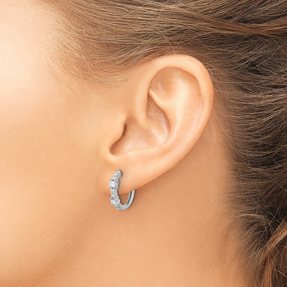 14k White Gold 2-row Baguette Diamond Omega Back Hoop Earrings