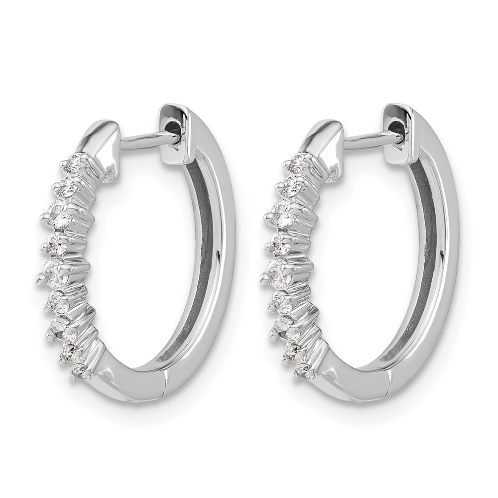14k White Gold 2-row Baguette Diamond Omega Back Hoop Earrings