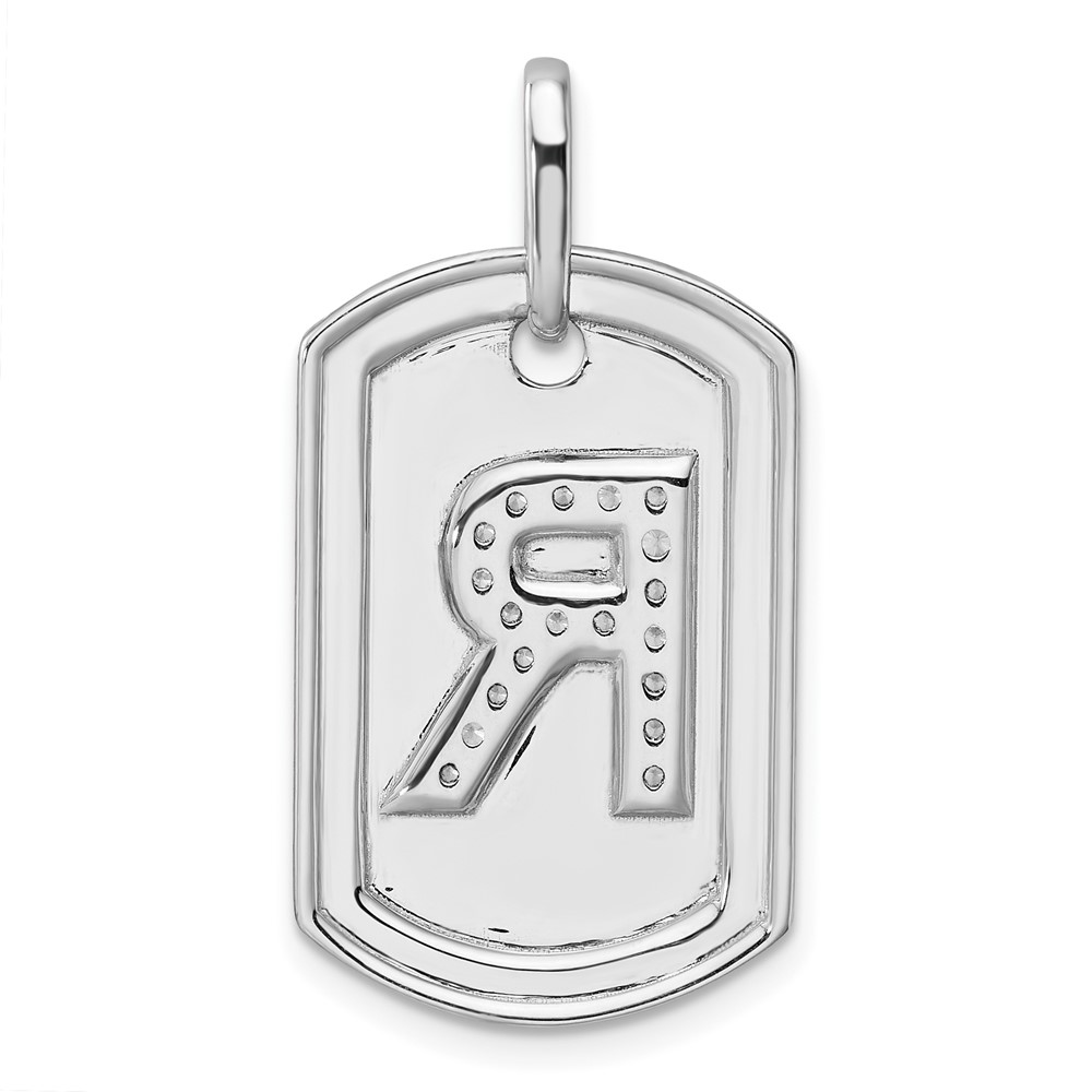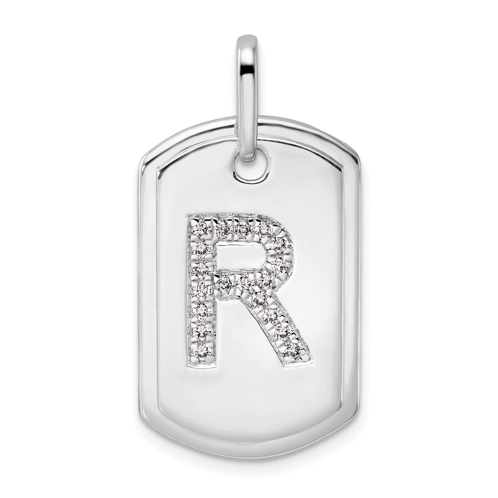 14K White Gold Diamond Initial R Dog Tag Charm
