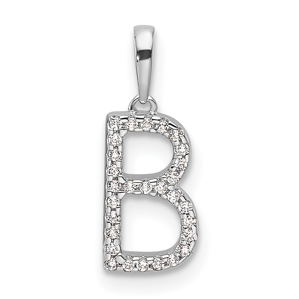 14K White Gold Diamond Letter B Initial Pendant