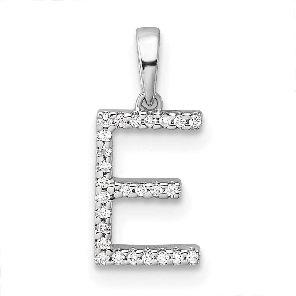 14K White Gold Diamond Letter E Initial Pendant