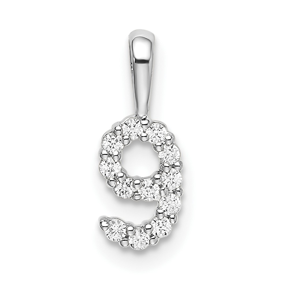 14k White Gold Diamond Number 9 Pendant