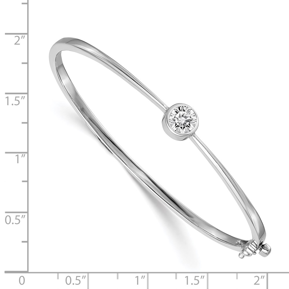 14k White Gold Holds 1 carat 6.0mm Round Stone Hinged Oval Bangle Bracelet Mounting