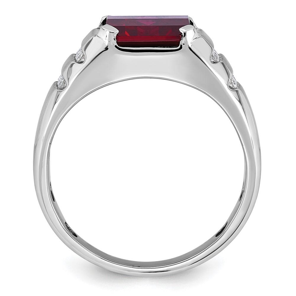 14k White Gold IBGoodman Men’s Created Ruby and 1/5 carat Diamond Complete Ring