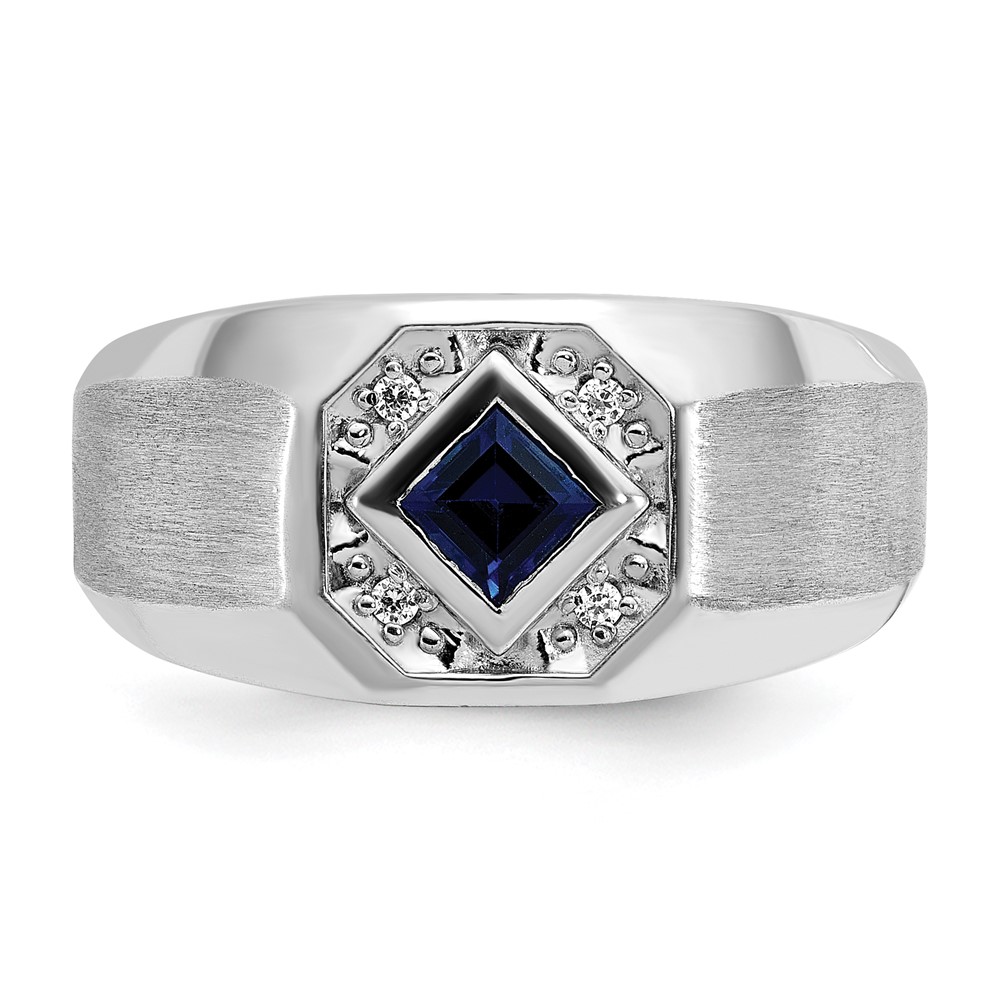 14k White Gold IBGoodman Men’s Created Sapphire and 1/20 carat Diamond Satin Complete Ring