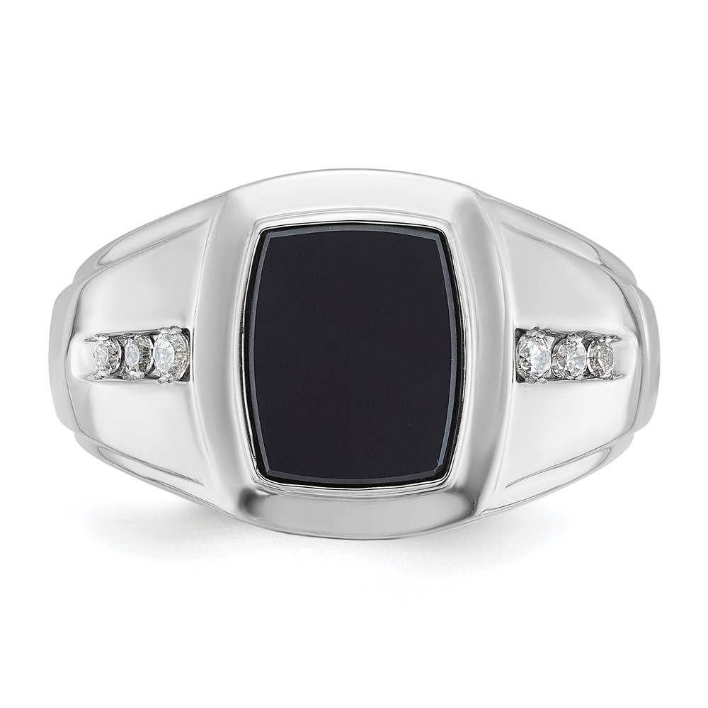 14k White Gold IBGoodman Men’s Onyx and 1/8 carat Diamond Complete Ring